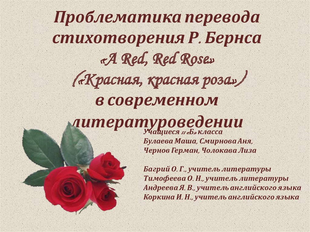 Анализ переводов стихотворенияР.Бернса «A Red, Red Rose»