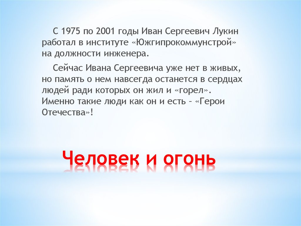 С 1975 по 2001 годы Иван Сергеевич Лукинработал в институте «Южгипрокоммунстрой»