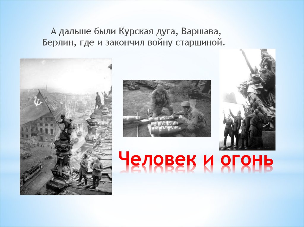 А дальше были Курская дуга, Варшава,Берлин, где и закончил войну старшиной.