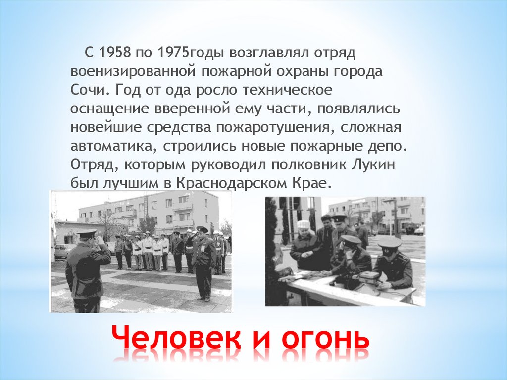 C 1958 по 1975годы возглавлял отрядвоенизированной пожарной охраны города