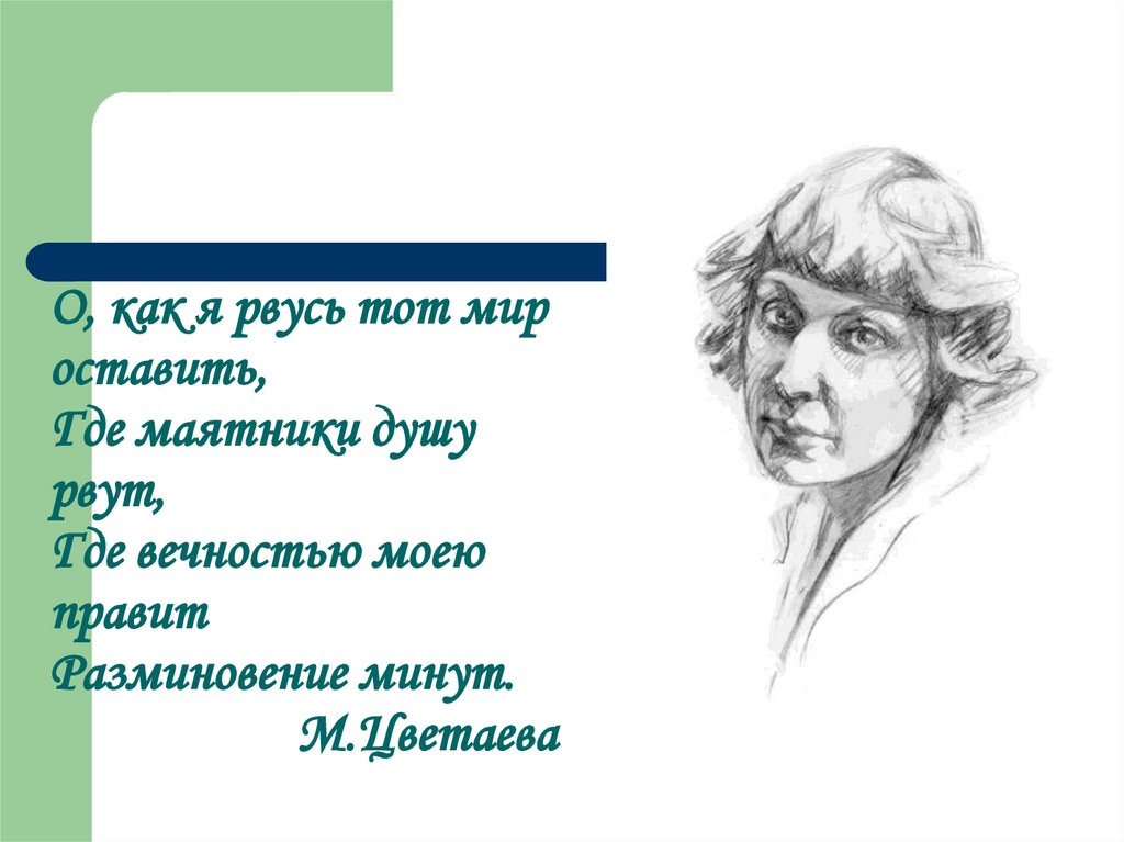 1. О, как я рвусь тот мир оставить, Где маятники душу рвут, Где вечностью моею правит Разминовение минут. М.Цветаева
