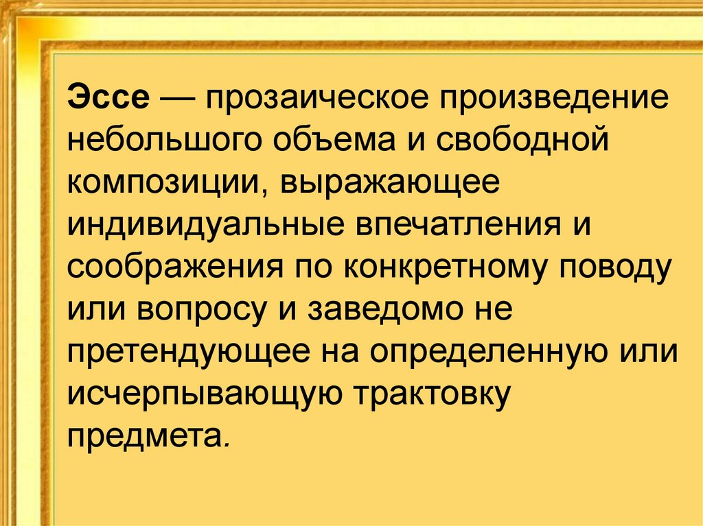 Эссе — прозаическое произведениенебольшого объема и свободной