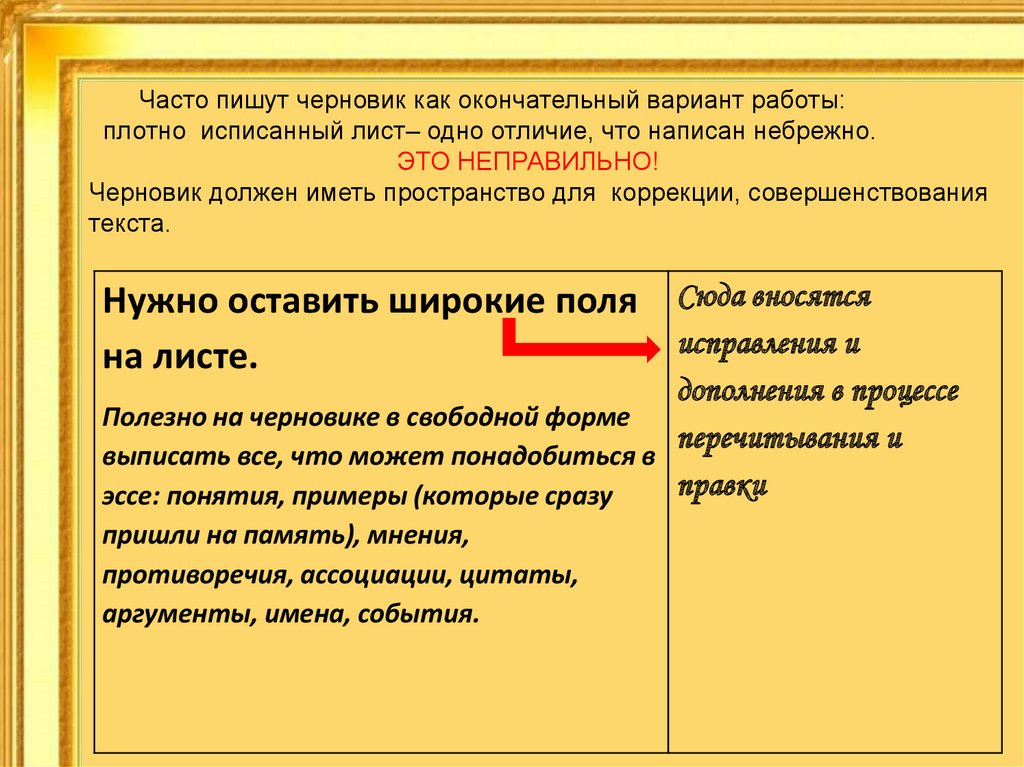 Часто пишут черновик как окончательный вариант работы:плотно исписанный лист– одно отличие, что написан небрежно.