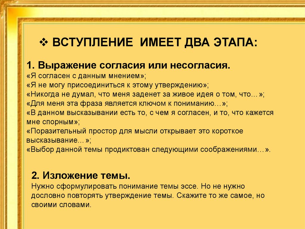 Нужно сформулировать понимание темы эссе. Но не нужно