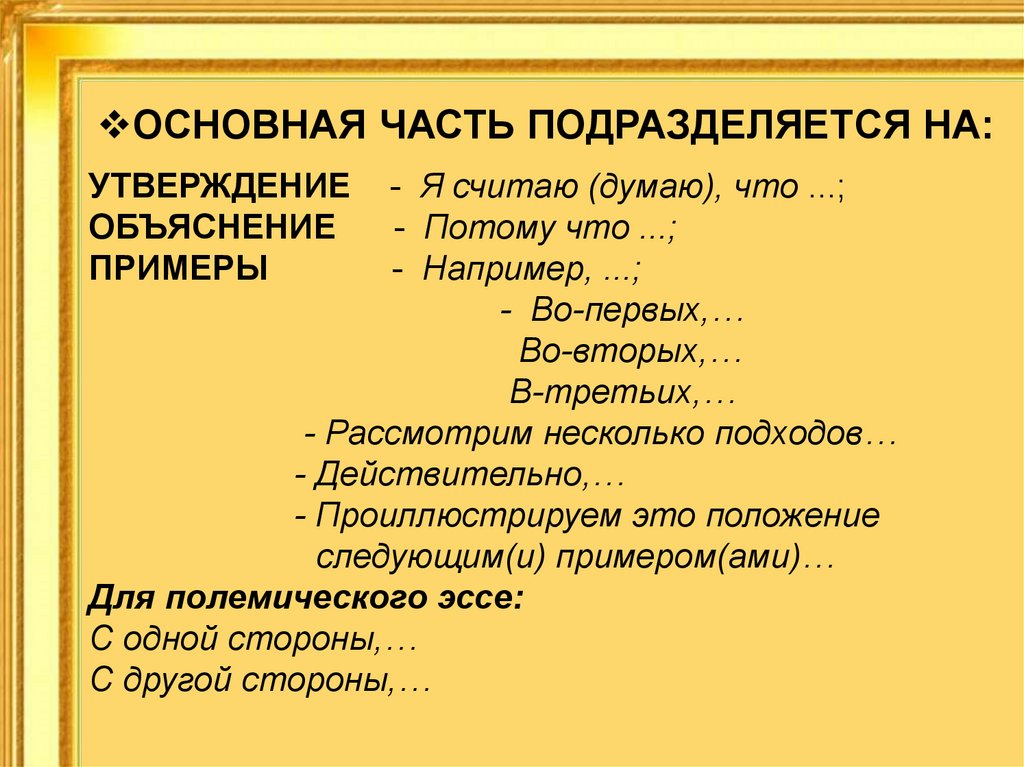 ОСНОВНАЯ ЧАСТЬ ПОДРАЗДЕЛЯЕТСЯ НА:УТВЕРЖДЕНИЕ