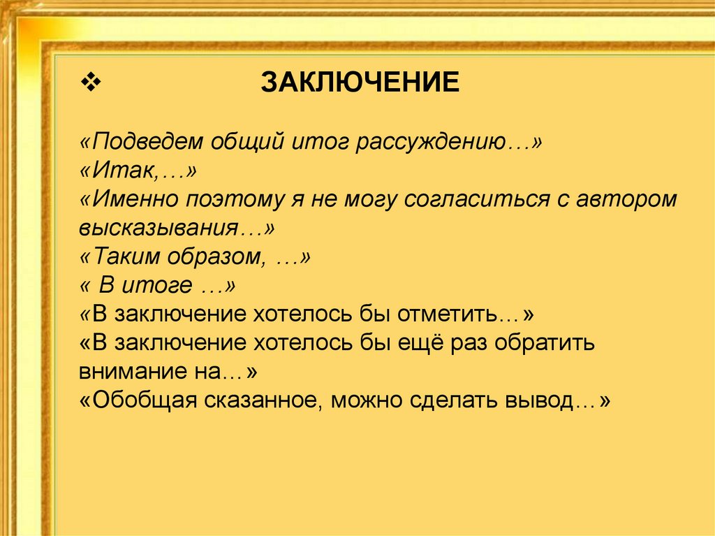 ЗАКЛЮЧЕНИЕ«Подведем общий итог рассуждению…»