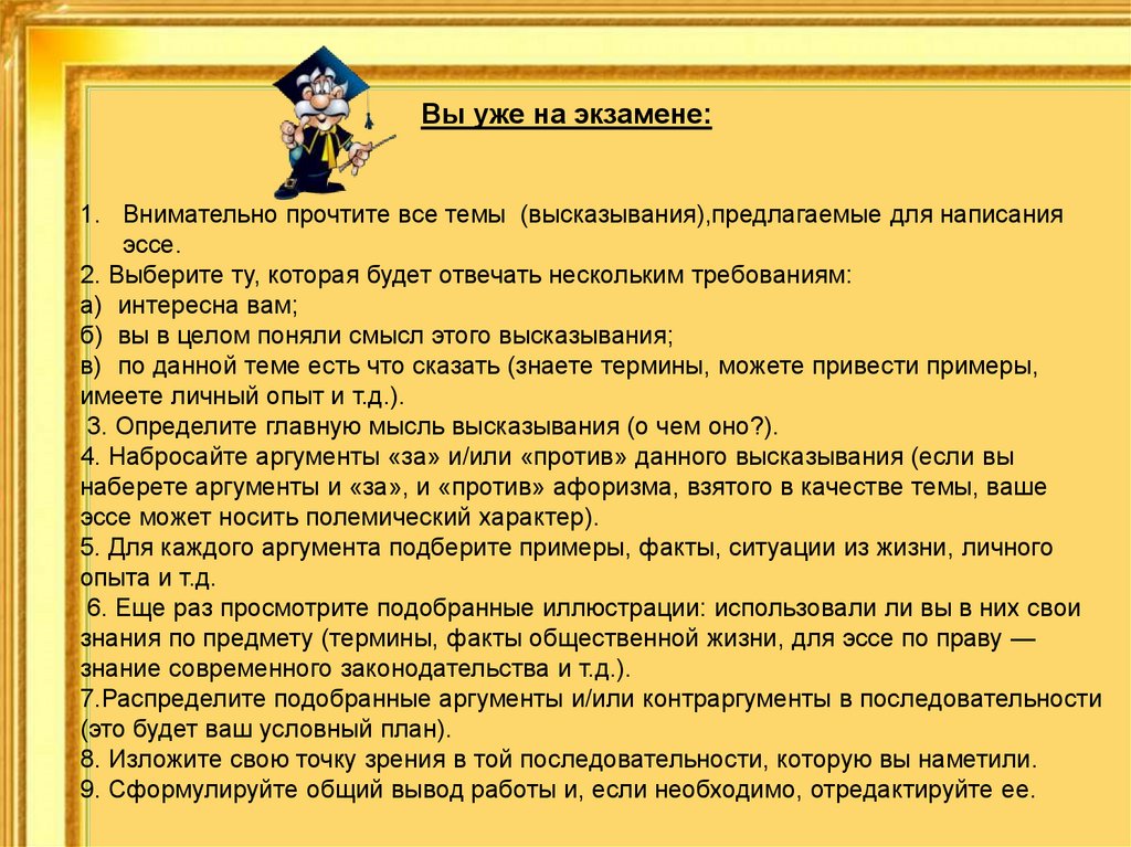Вы уже на экзамене:1. Внимательно прочтите все темы (высказывания),предлагаемые для написания