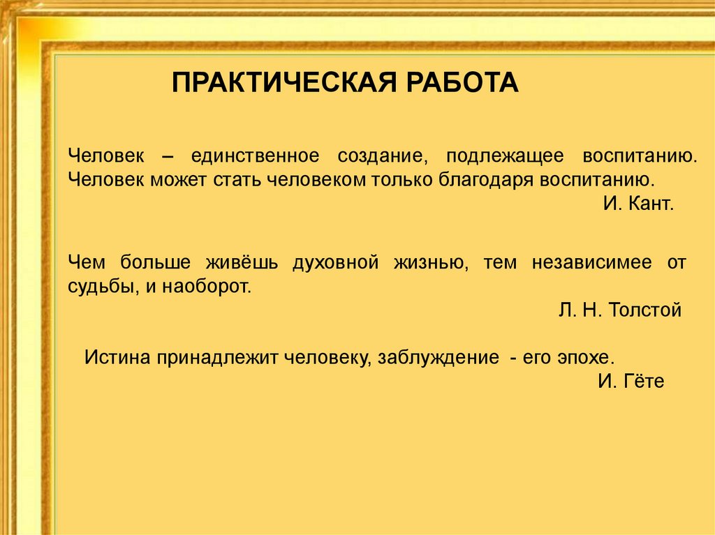 ПРАКТИЧЕСКАЯ РАБОТАЧеловек – единственное создание, подлежащее воспитанию.