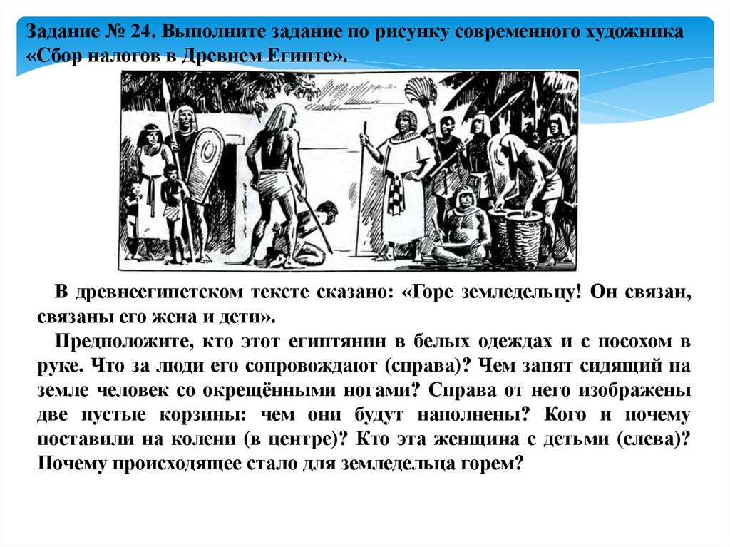 Задание № 24. Выполните задание по рисунку современного художника«Сбор налогов в Древнем Египте».
