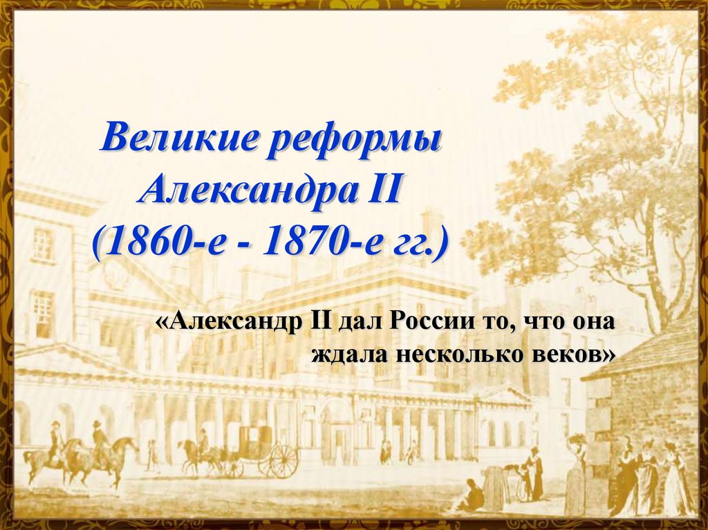 Великие реформы Александра II (1860-е - 1870-е гг.)