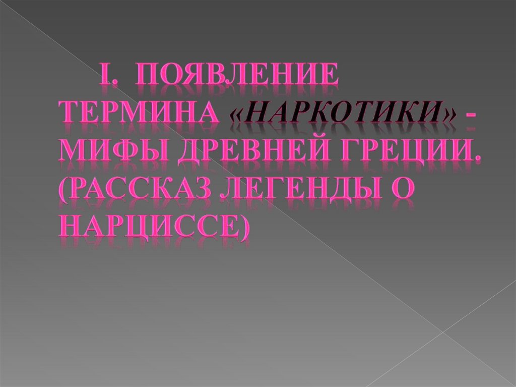 Появление термина "наркотики". Мифы древней Греции. (Рассказ легенды о Нарциссе)