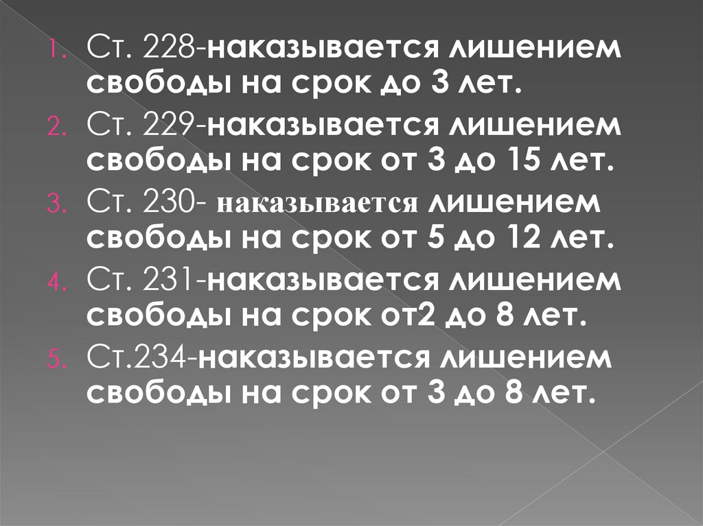 Ст. 228-наказывается лишениемсвободы на срок до 3 лет.