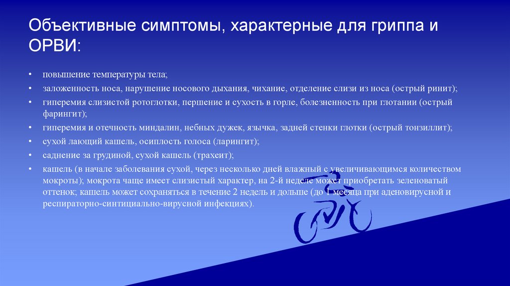 Объективные симптомы, характерные для гриппа иОРВИ: