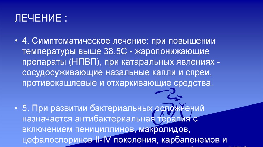 ЛЕЧЕНИЕ :• 4. Симптоматическое лечение: при повышении