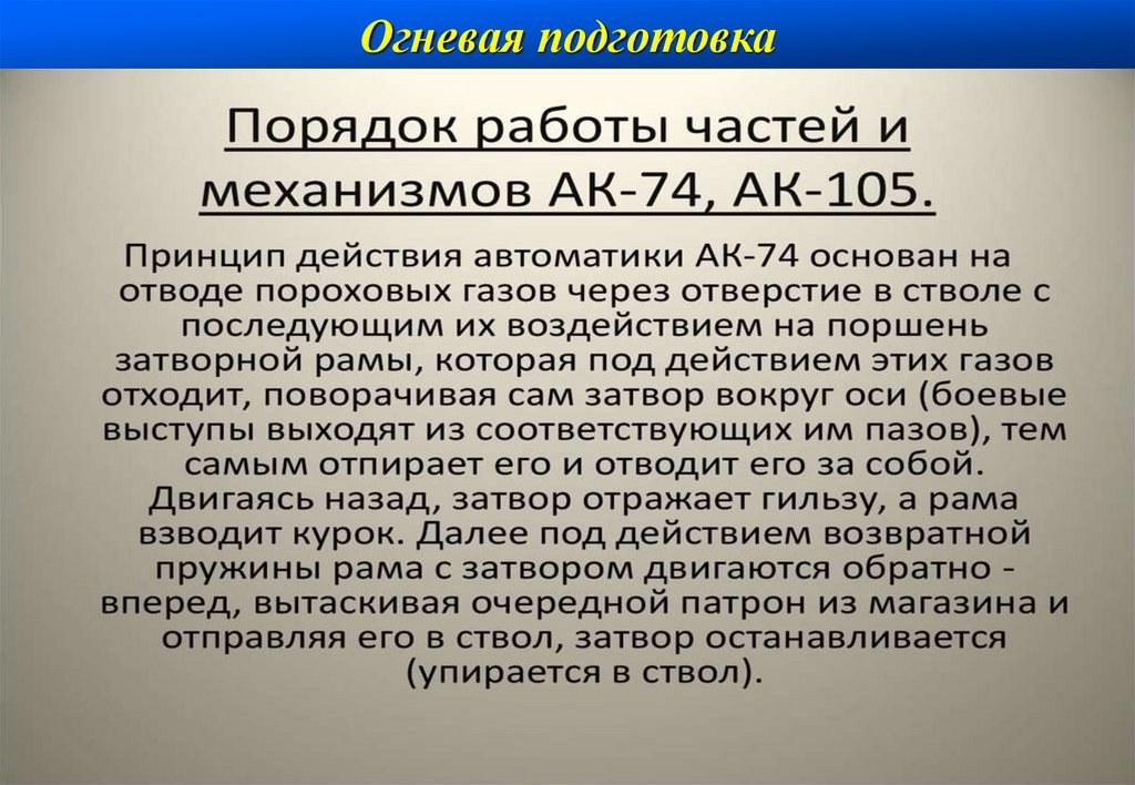 РАБОТЫ ЧАСТЕЙ И МЕХАНИЗМОВ АК-74,