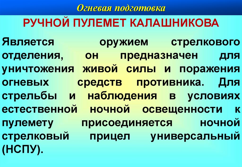 Огневая подготовкаРУЧНОЙ ПУЛЕМЕТ КАЛАШНИКОВА