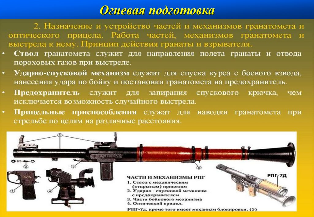 РАБОТЫ ЧАСТЕЙ И МЕХАНИЗМОВ РПГ-7.