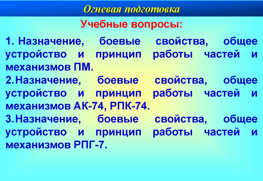 Занятие 1:«Пистолет Макарова (ПМ), АК 74, РПК 74,