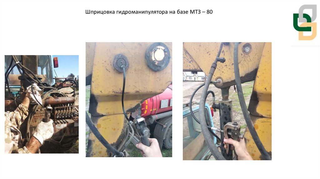 Шприцовка гидроманипулятора на базе МТЗ – 809.