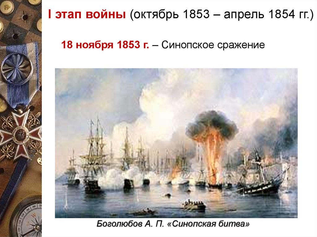I этап войны (октябрь 1853 – апрель 1854 гг.)18 ноября 1853 г. – Синопское сражение