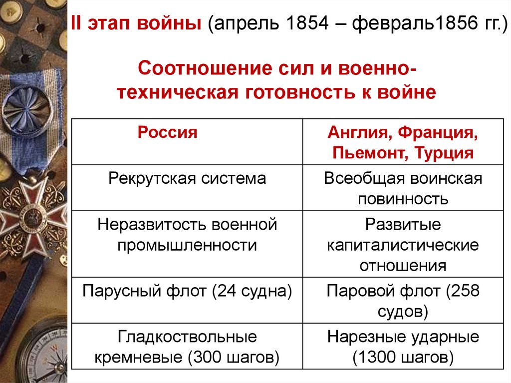 II этап войны (апрель 1854 – февраль1856 гг.)Соотношение сил и военнотехническая готовность к войне