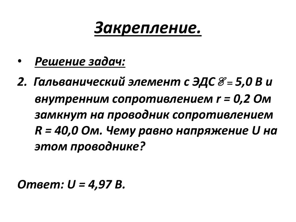 2. Гальванический элемент с ЭДС E = 5,0 В и