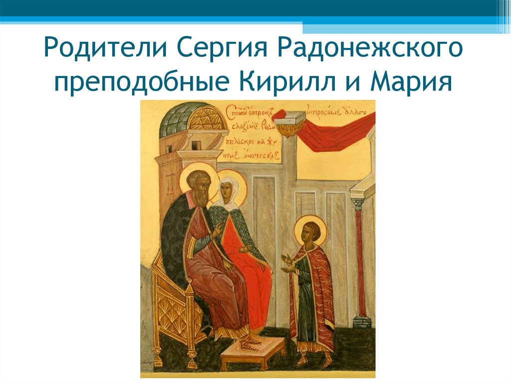 Родители Сергия Радонежскогопреподобные Кирилл и Мария