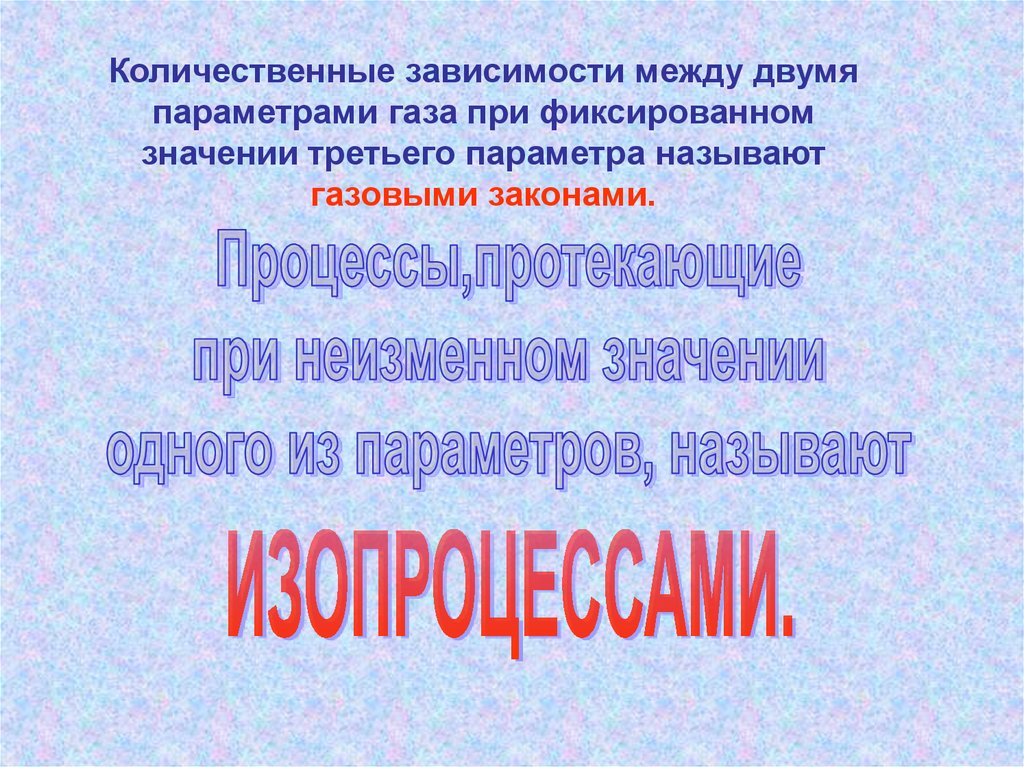Количественные зависимости между двумяпараметрами газа при фиксированном