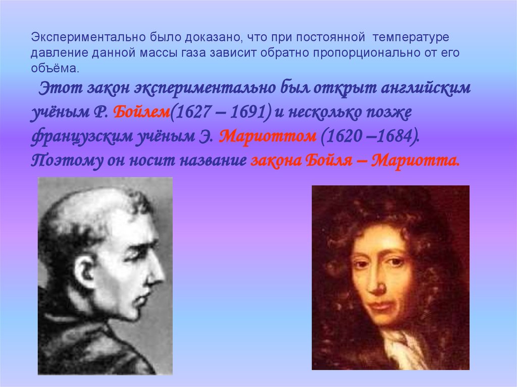 Поэтому он носит название закона Бойля – Мариотта.