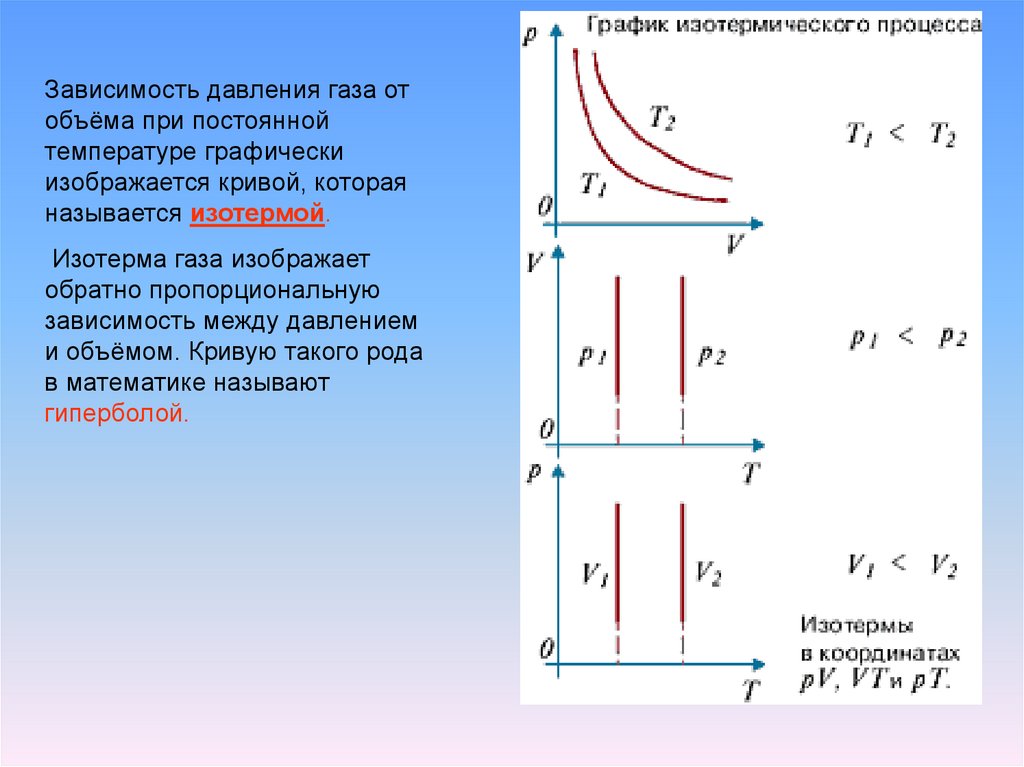 Зависимость давления газа отобъёма при постоянной