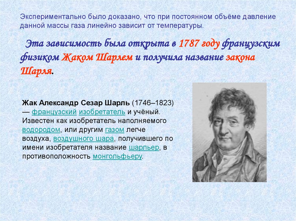 физиком Жаком Шарлем и получила название закона