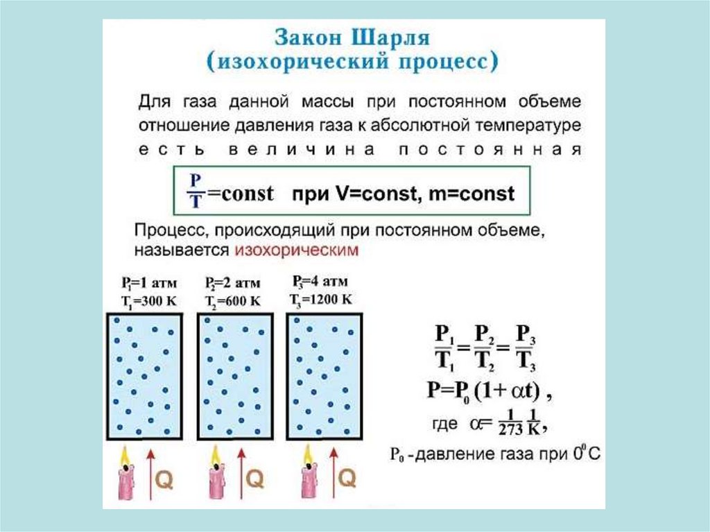 Экспериментально было доказано, что при постоянном объёме давлениеданной массы газа линейно зависит от температуры.