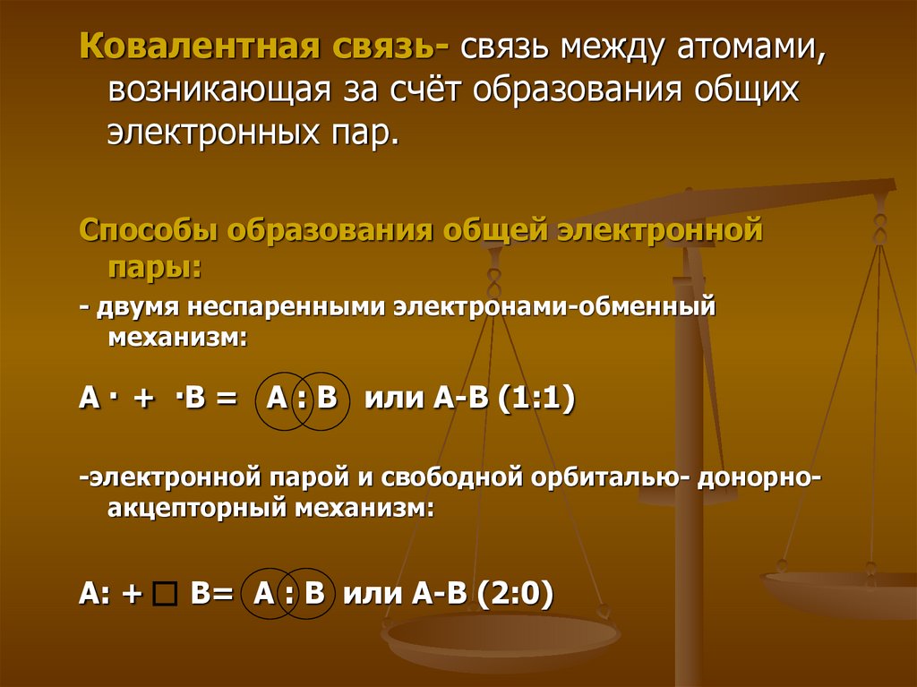 Ковалентная связь- связь между атомами,возникающая за счёт образования общих