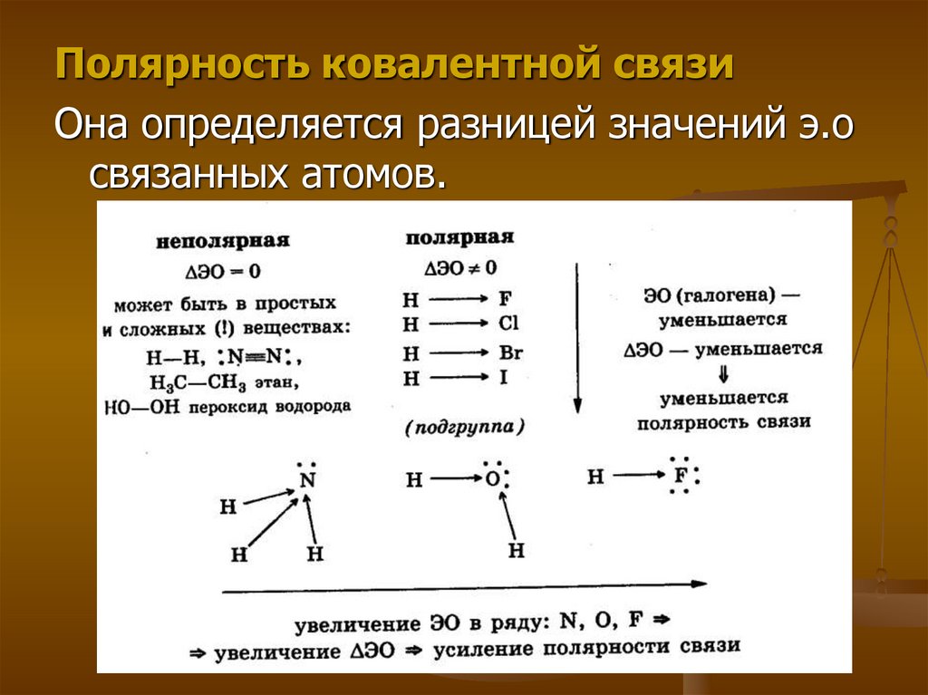 Полярность ковалентной связиОна определяется разницей значений э.о