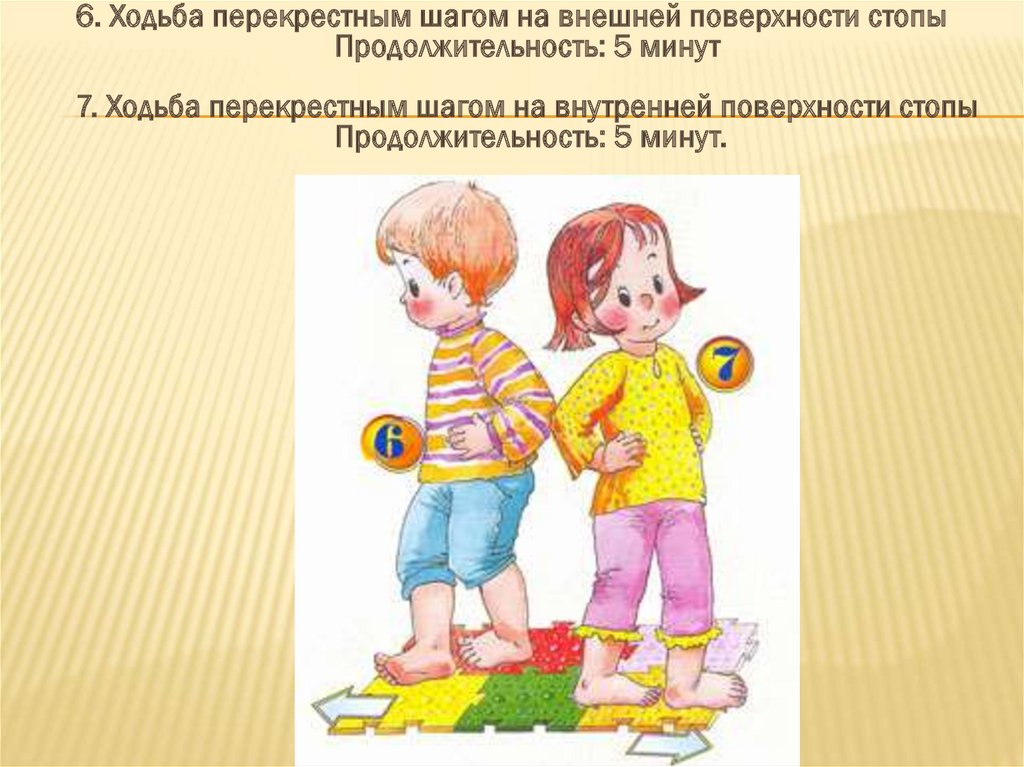 6. Ходьба перекрестным шагом на внешней поверхности стопыПродолжительность: 5 минут