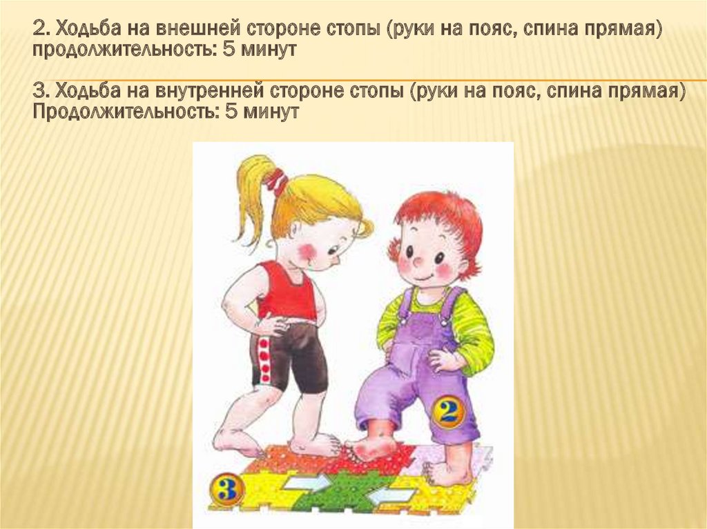 2. Ходьба на внешней стороне стопы (руки на пояс, спина прямая)продолжительность: 5 минут