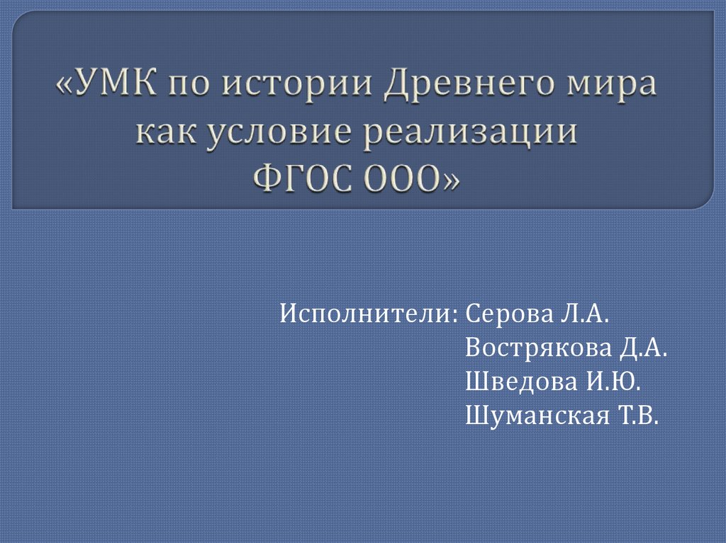 УМК по истории Древнего мира как условие реализации ФГОС ООО