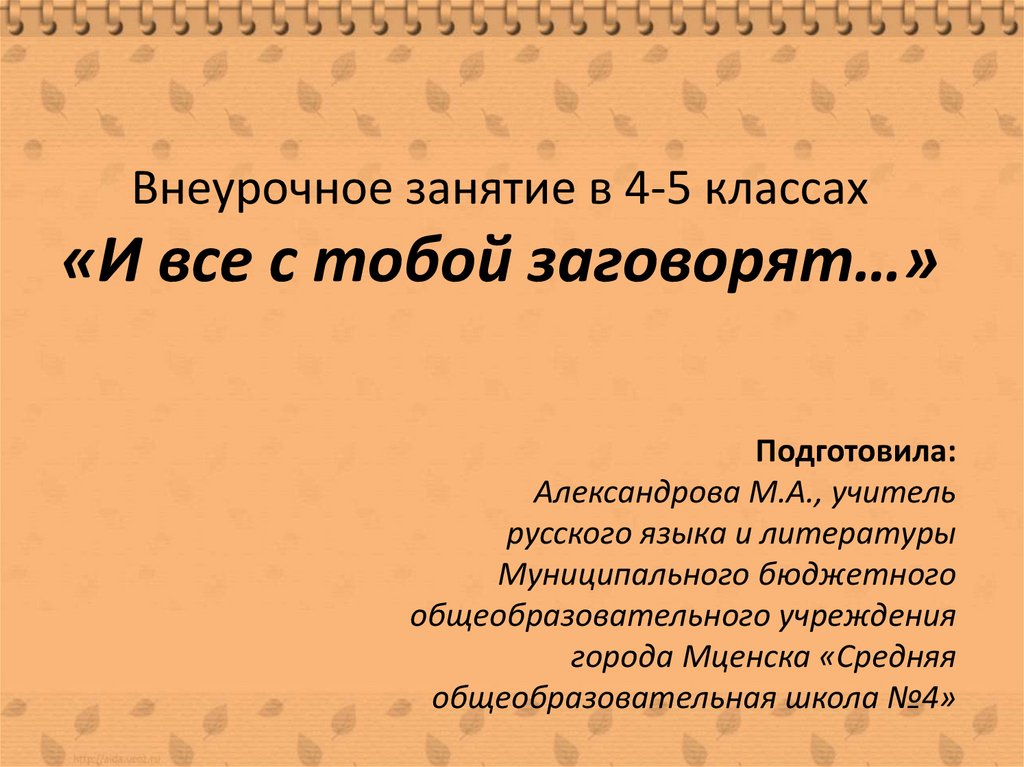 Внеурочное занятие в 4-5 классах«И все с тобой заговорят…»