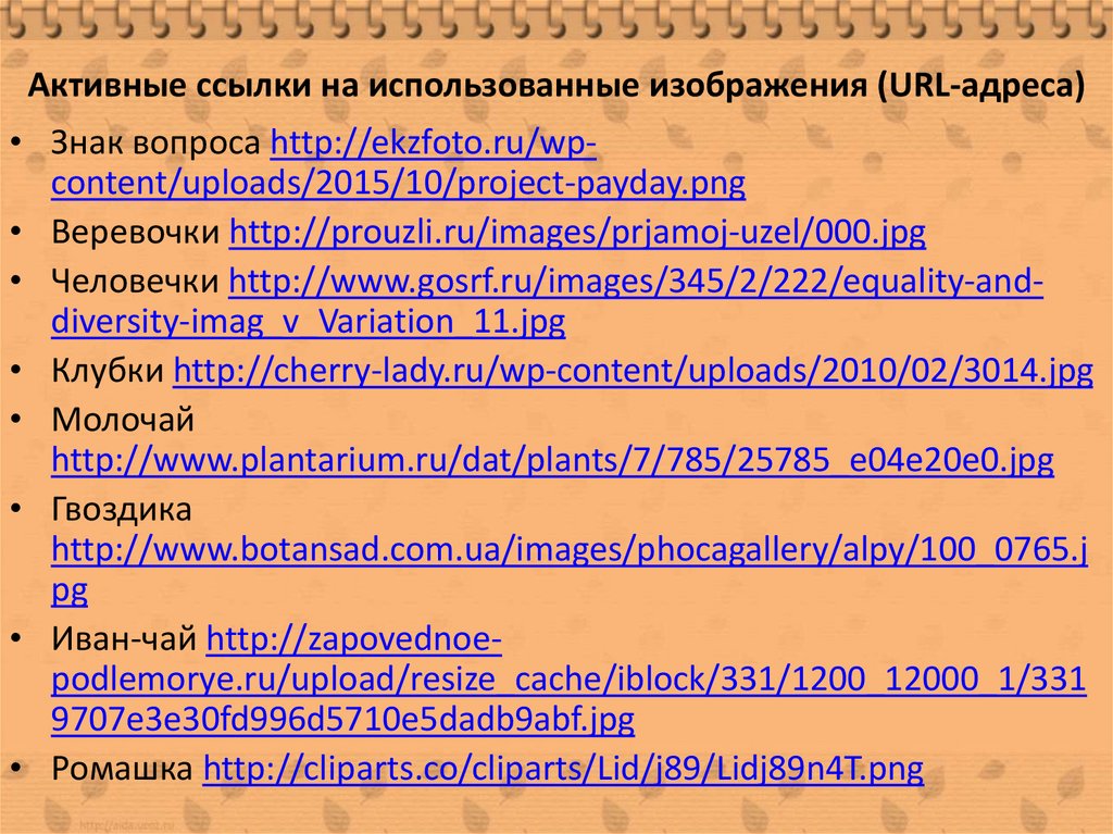Активные ссылки на использованные изображения (URL-адреса)• Знак вопроса http://ekzfoto.ru/wpcontent/uploads/2015/10/project-payday.png