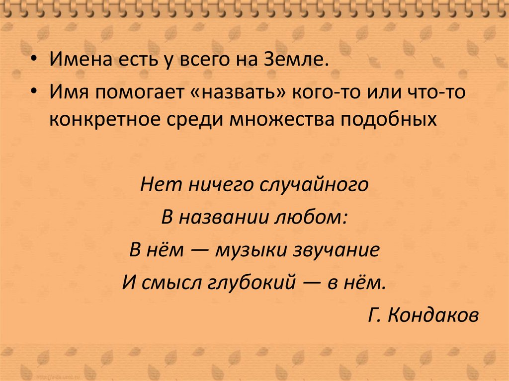 • Имена есть у всего на Земле.• Имя помогает «назвать» кого-то или что-то