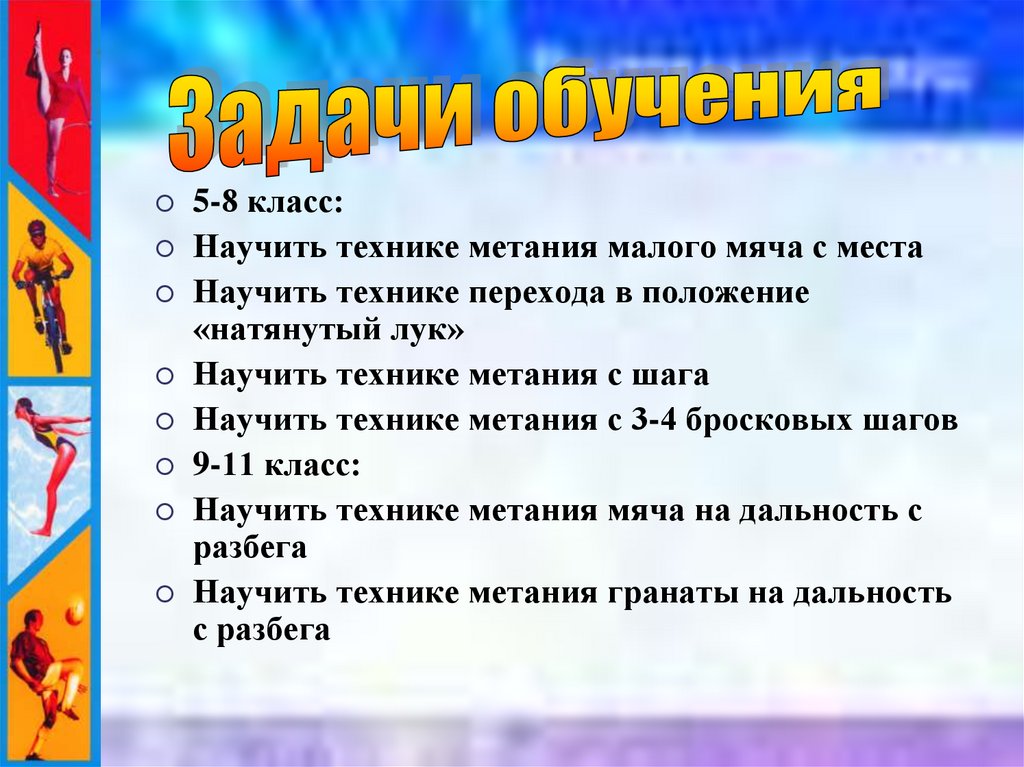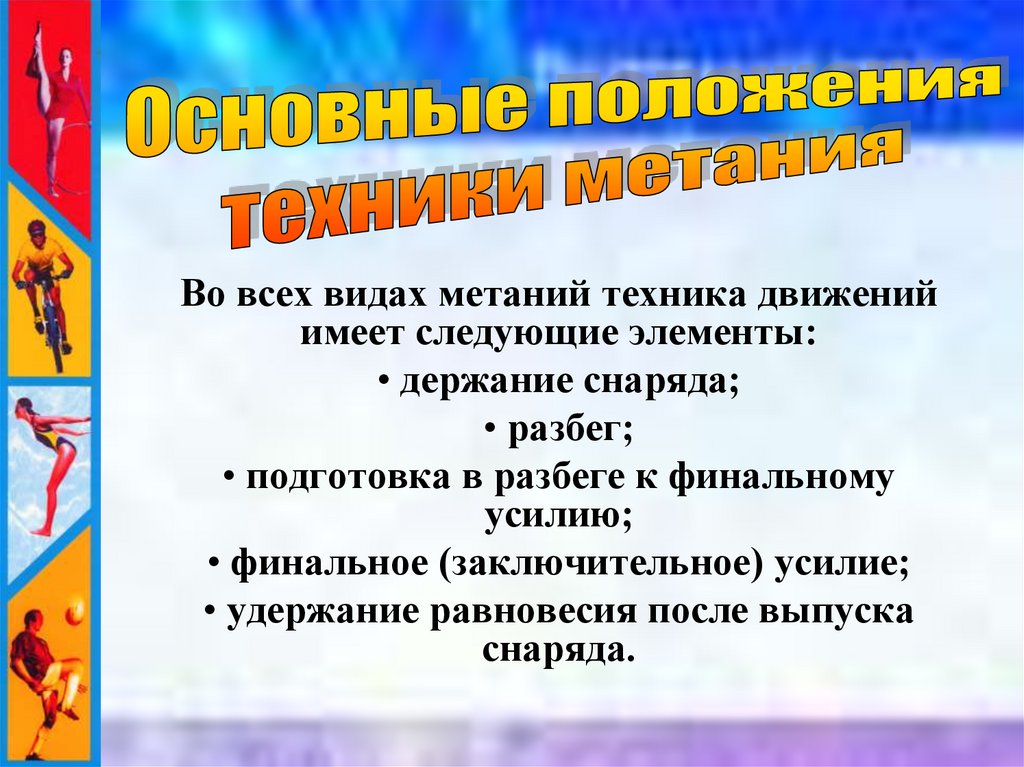 Во всех видах метаний техника движенийимеет следующие элементы: