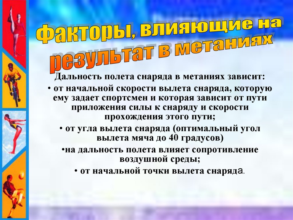 Дальность полета снаряда в метаниях зависит:• от начальной скорости вылета снаряда, которую