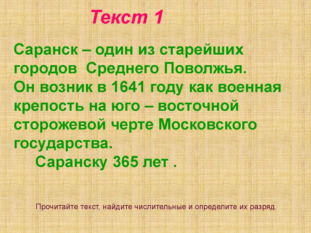 Прочитайте текст, найдите числительные и определите их разряд.