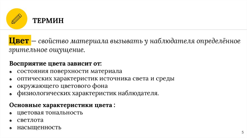 ТЕРМИНЦвет — свойство материала вызывать у наблюдателя определённое