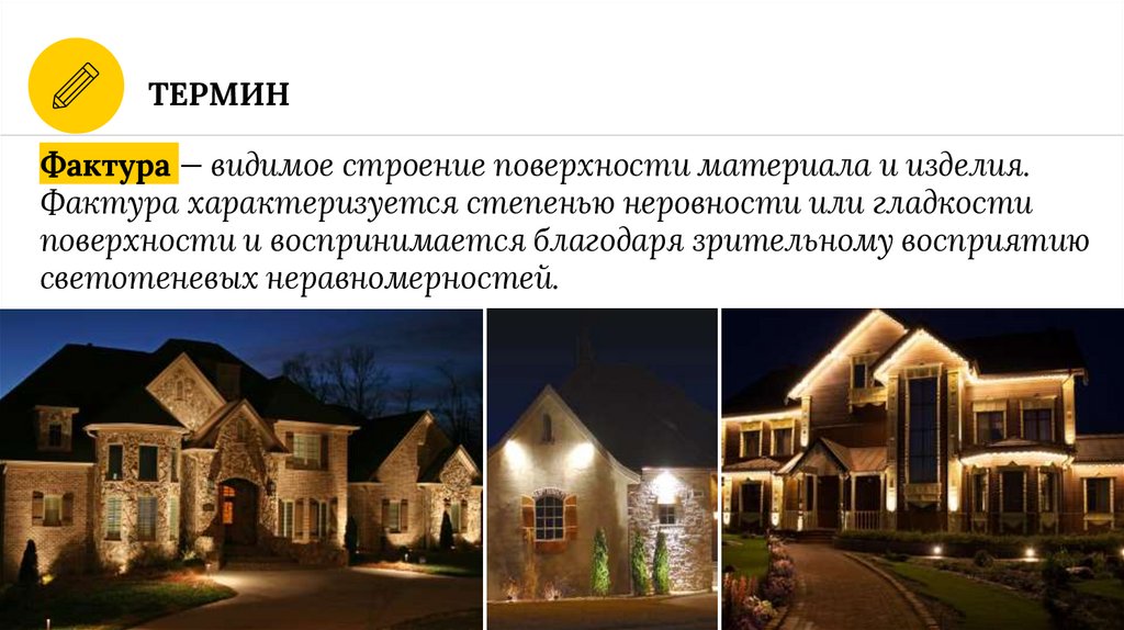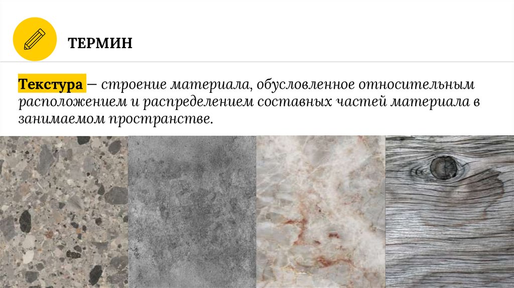ТЕРМИНФактура — видимое строение поверхности материала и изделия.
