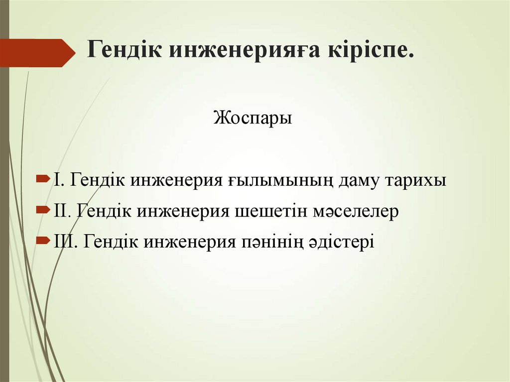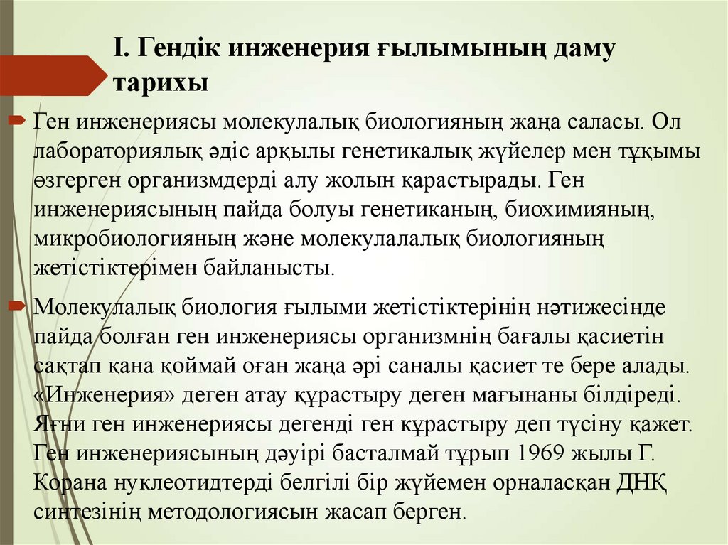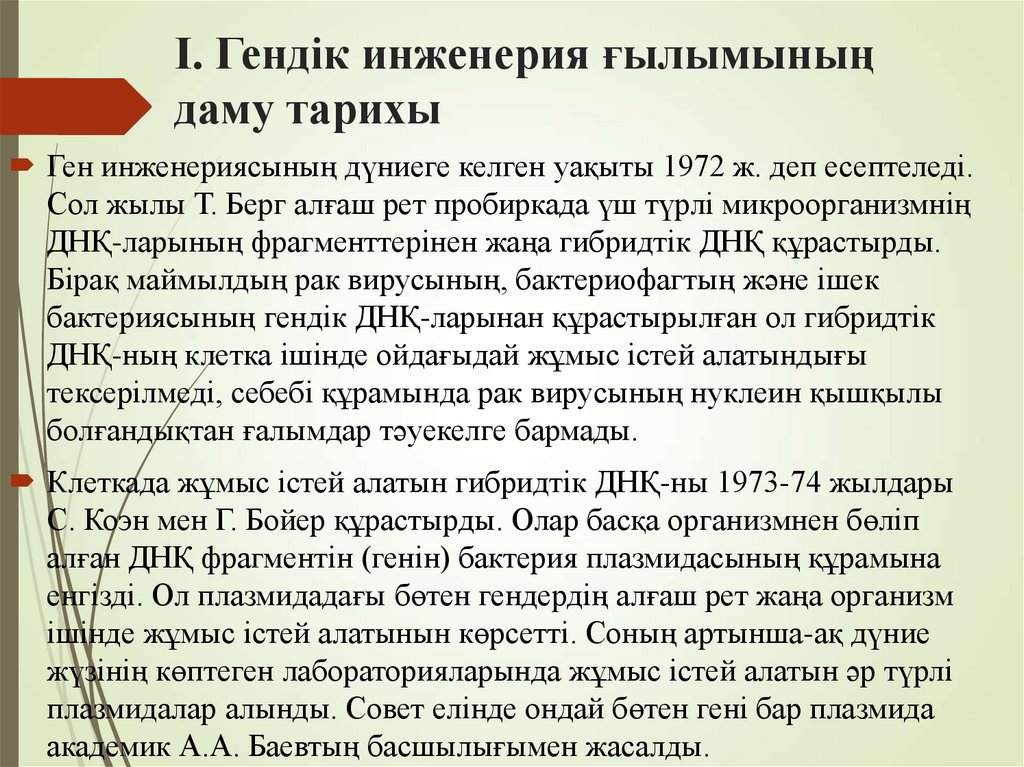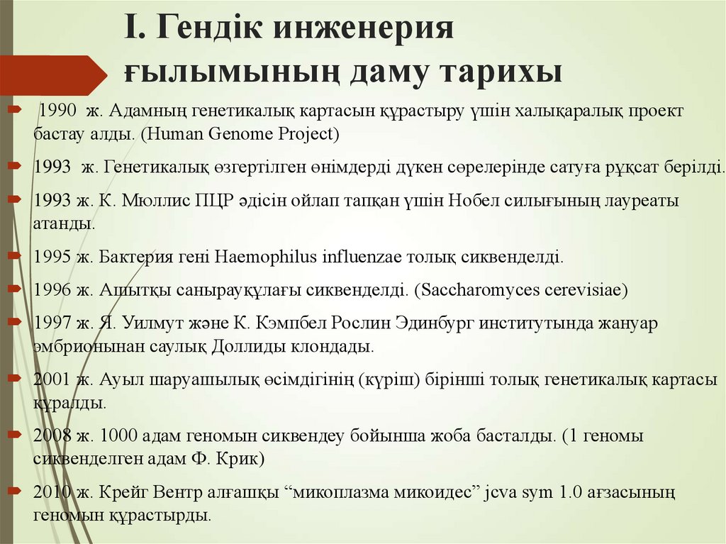 І. Гендік инженерия ғылымыныңдаму тарихы