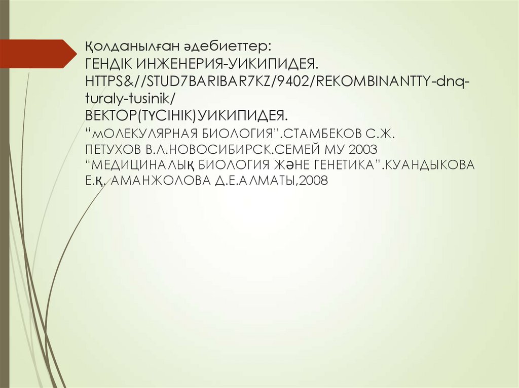 Қолданылған әдебиеттер:ГЕНДІК ИНЖЕНЕРИЯ-УИКИПИДЕЯ.