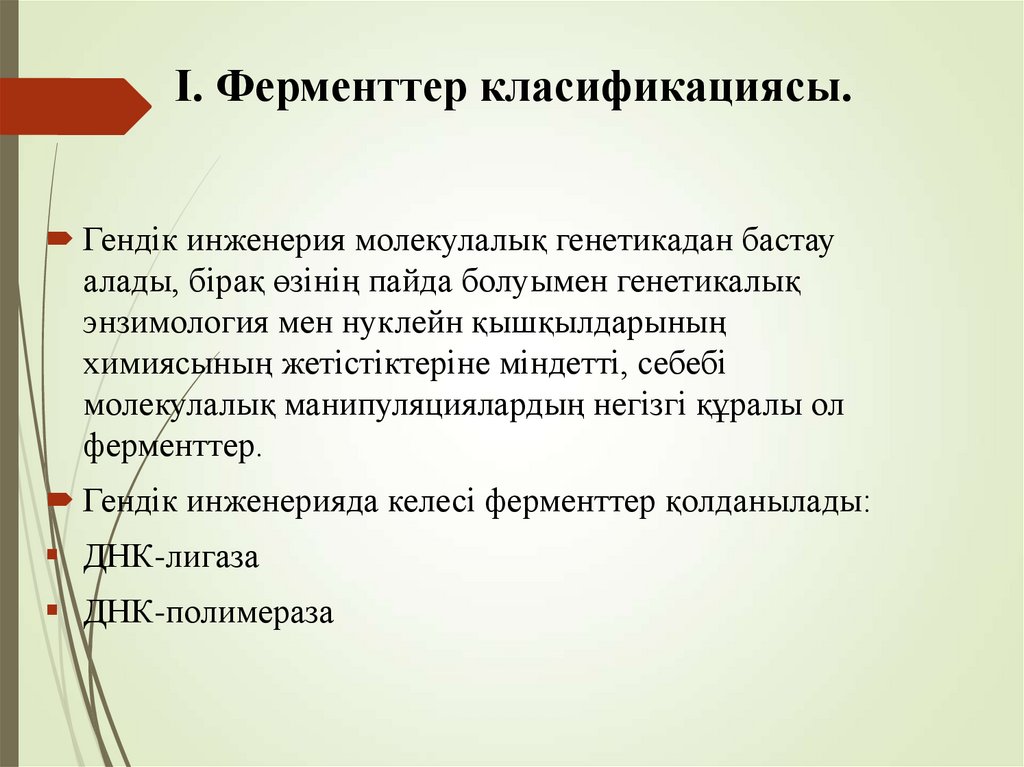 І. Ферменттер класификациясы.Гендік инженерия молекулалық генетикадан бастау