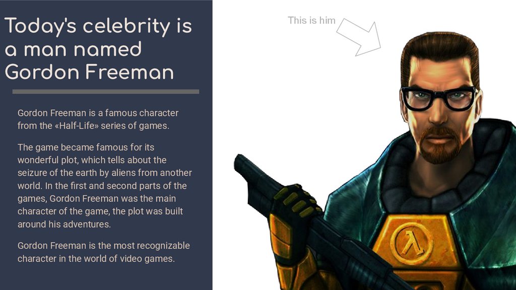 This is the Half-Life logoOur celebrity will be taken from the computer game «Half-Life»