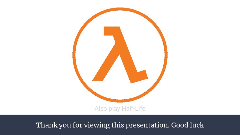 Also play Half-LifeThank you for viewing this presentation. Good luck